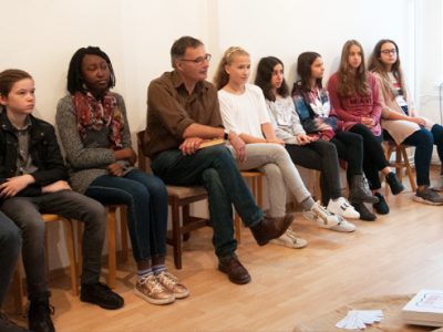 Am Tag zuvor hatten sich die Jugendlichen in einer interaktiven LesArt-Veranstaltung u. a. mit der Hauptfigur des Romans, dem Jungen Samuel, und dessen Lebenssituation beschäftigt. Während des heutigen Treffens berichteten sie dem Schriftsteller von ihren ersten Erkenntnissen zum Buch und von den Diskussionen, die dadurch angeregt wurden.