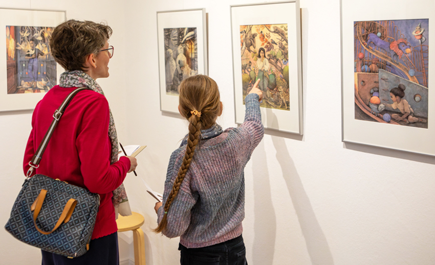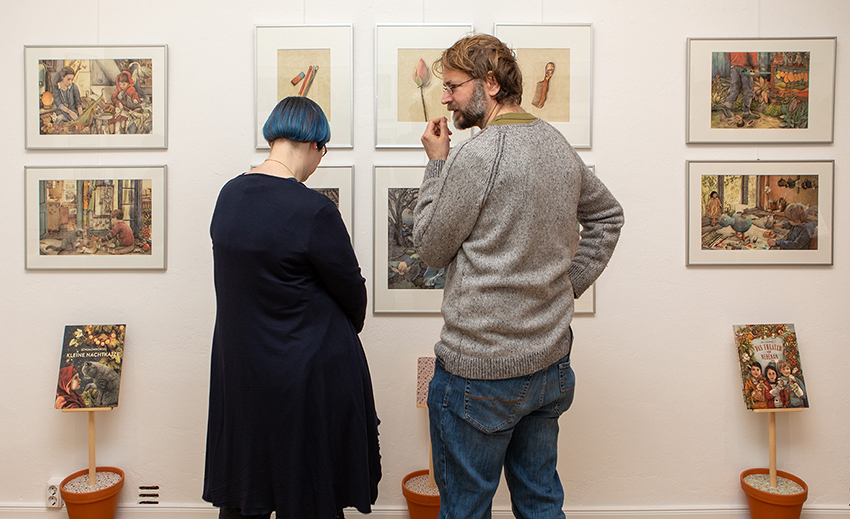 Neben Originalen, Skizzen und freien Arbeiten zeigt die Ausstellung auch über 60 internationale Buchausgaben der preisgekrönten Bilderbuchkünstlerin.