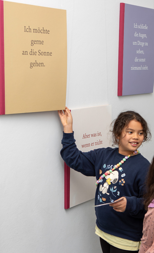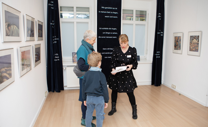 Die Besucherinnen und Besucher erkundeten die Ausstellung mithilfe des LesArt-Mit-Mach-Falters, durch Teilnahme an verschiedenen interaktiven Angeboten, initiiert und betreut von den LesArt-Mitarbeiter*innen.