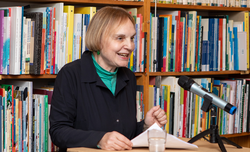 Danach kamen beide mit Sonja Danowski ins Gespräch, die unter anderem Auskunft darüber gab, wie sie zum Illustrieren von Bilderbüchern für Kinder gekommen ist und worin sich ihre Arbeit unterscheidet, wenn sie Texte anderer illustriert bzw. ihre eigenen Geschichten gestaltet.